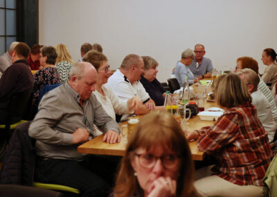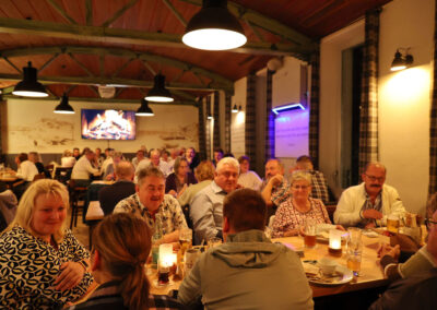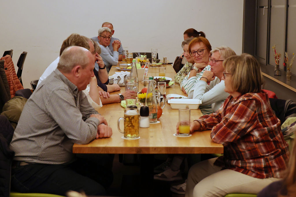 Unser diesjähriges Dorffest am 19.09.2025 wurde ein italienischer Abend. Bei bestem spätsommerlichen Wetter konnten wir am Nachmittag den geliehenen mobilen Pizzaofen anschüren, sodass ab 17:30 Uhr die ersten individuell belegten Pizzen gebacken werden konnten. Ein ganzes Pizzabäckerteam kam jedem Wunsch nach und versorgte nahezu das ganze Dorf mit der italienischen Spezialität. Passend dazu ertönten italienische Lieder über den Dorfplatz und nach Einbruch der Dunkelheit wurde die Kirche in grün-weiß-rot angestrahlt. Mitgebrachte Nachspeisen, wie zum Beispiel Tiramisu, rundeten den Abend ab.